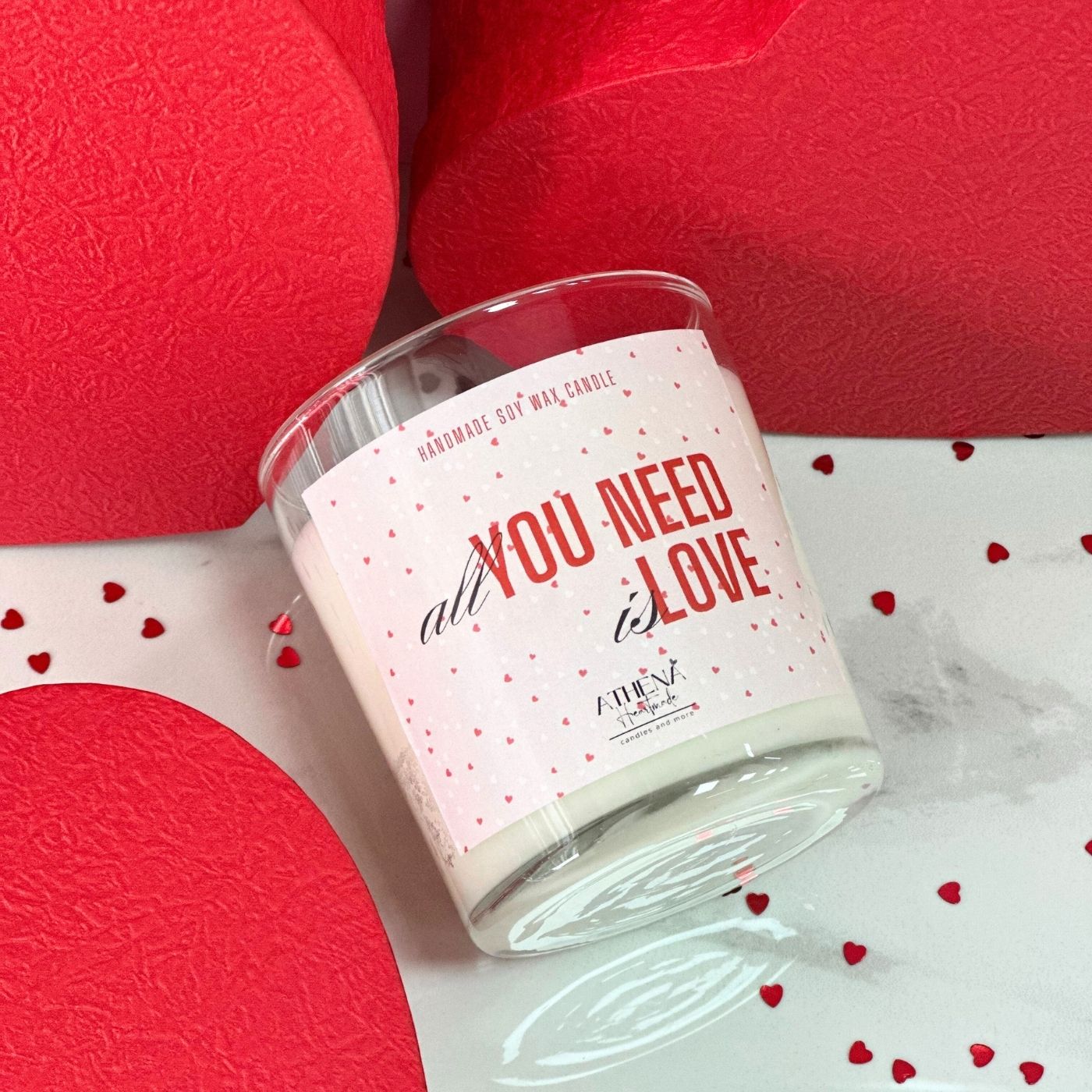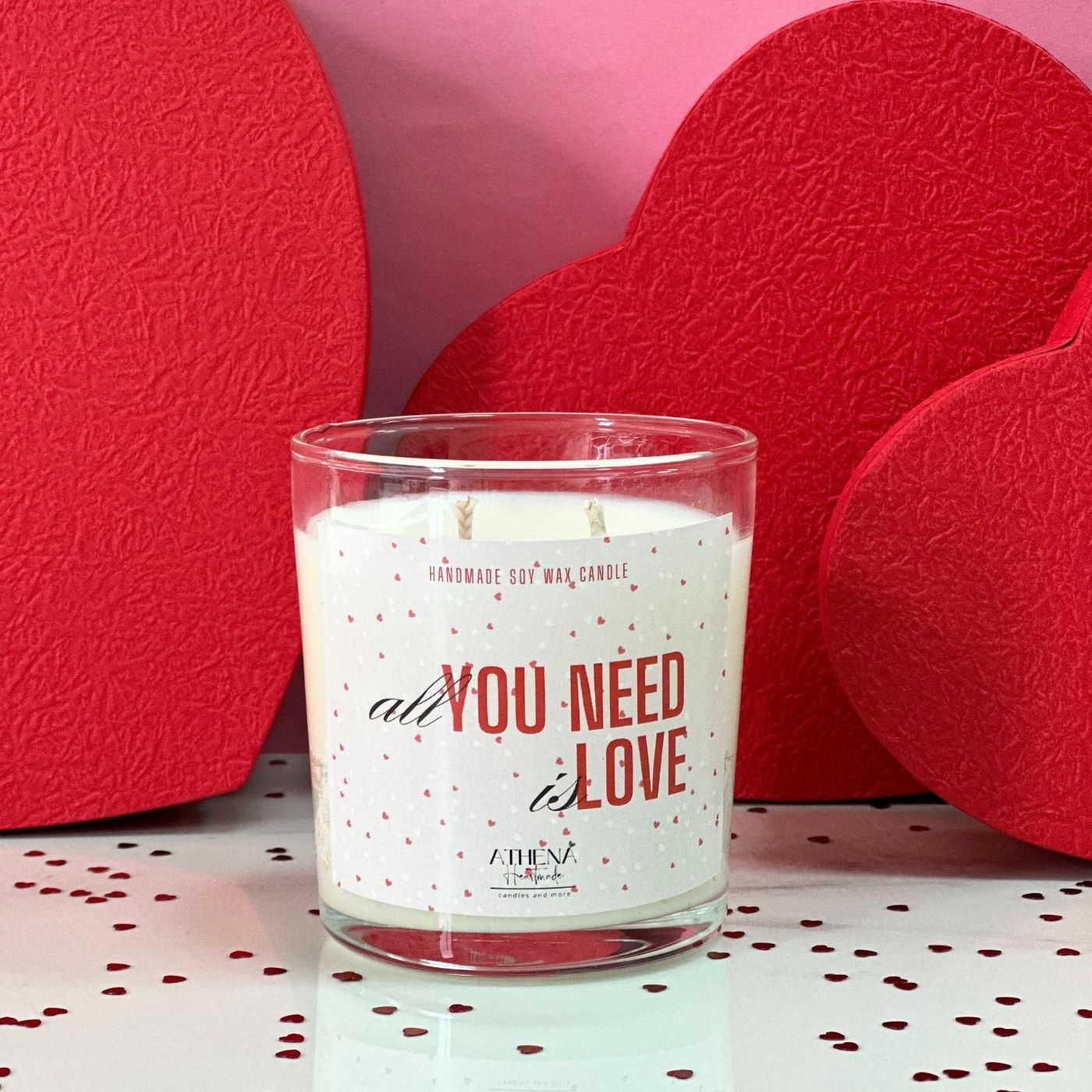 Valentine’s Αρωματικό Κερί Σόγιας “all YOU NEED is LOVE” σε Γυάλινο Δοχείο